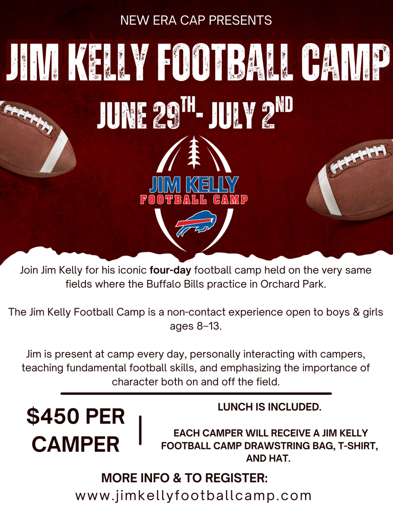 WE ARE EXCITED TO ANNOUNCE OUR 2026 JIM KELLY FOOTBALL ONE-DAY CLINIC AND FOUR-DAY CAMP!